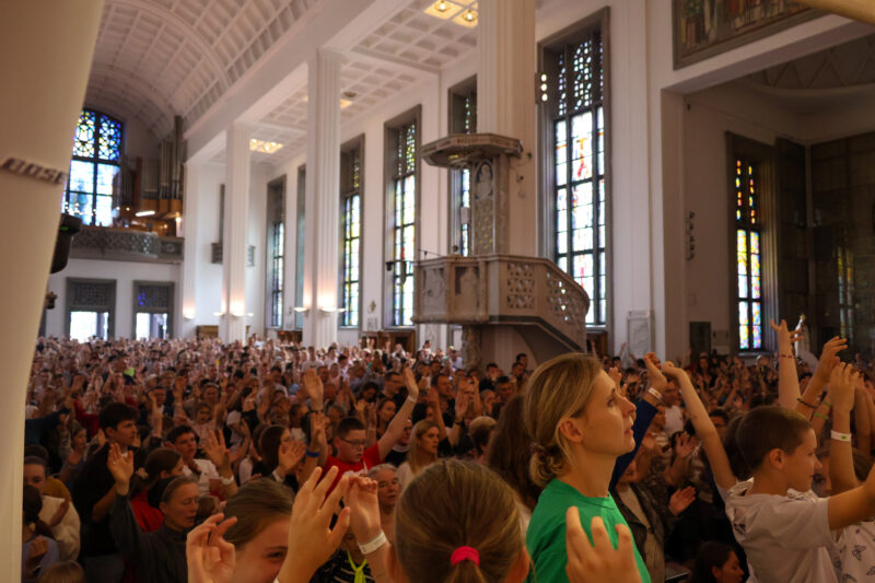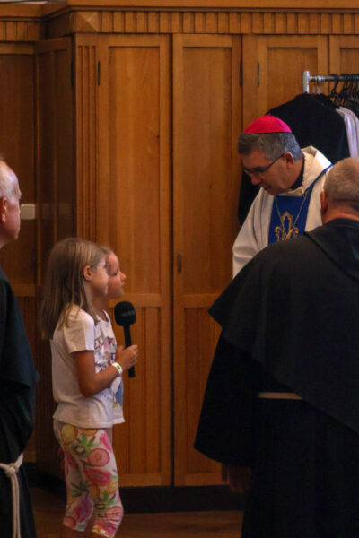 Zjazd rozpoczął się Mszą Świętą o godz. 11.00 w bazylice, stanowiącą centralny punkt spotkania. Eucharystii przewodniczył biskup Wojciech Osial z Łowicza i Przewodniczący Komisji Wychowania Katolickiego, a śpiew animowała schola dziecięca “Kędziorki” z Kampinosu. Dzieci przyniosły w darach swoje intencje, z którymi przyjechały do Niepokalanej.