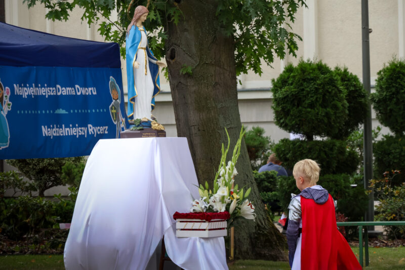 Szlak Rycerski, Skarbiec Maryi, warsztaty plastyczne, ceramiczne i różańcowe, robienie tarcz rycerskich i czapeczek, Kuchcik Niepokalanej, konkurs plastyczny, pokaz strażacki, grupa rekonstrukcyjna i animacyjna, dmuchańce, koniki, malowanie twarzy, baloniki, warkoczyki, loteria rycerska, a także strefa malucha. Wśród licznych atrakcji odbył się również konkurs na Najpiękniejszą Damę i Najdzielniejszego Rycerza Dworu Niepokalanej. Dzieci z wielkim zaangażowaniem przygotowywały swoje stroje – rycerskie zbroje, tarcze i hełmy oraz piękne suknie i wianki dla dam.