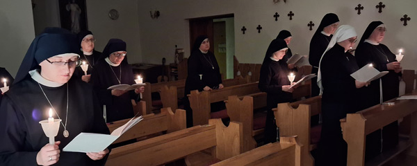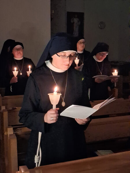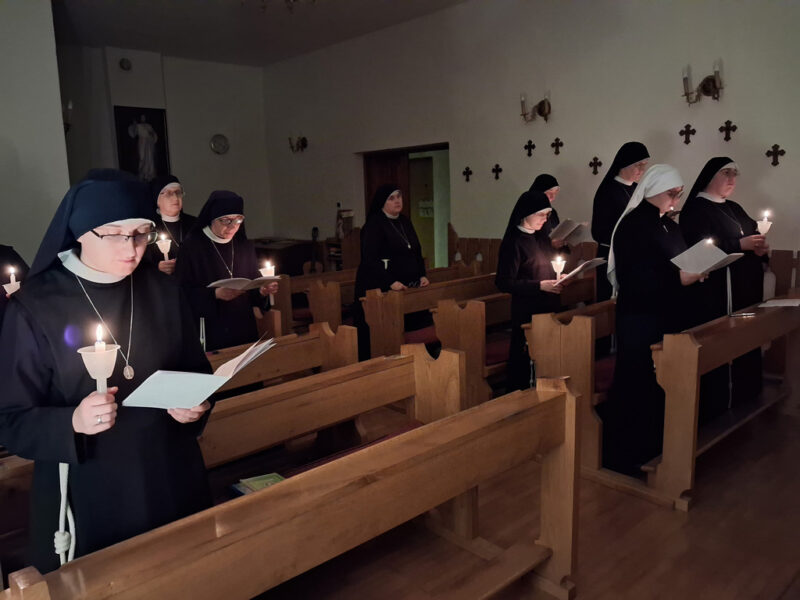 Jak co roku w wigilię uroczystości św. Franciszka z Asyżu zebrałyśmy się w naszej kaplicy, by wspominać jego przejście do wieczności. W nabożeństwie przeplatają się franciszkańskie pieśni z tekstami św. Franciszka. Najbardziej wymowny jest opis jego śmierci, którego słuchamy przy zgaszonym świetle z zapalonymi świecami.
