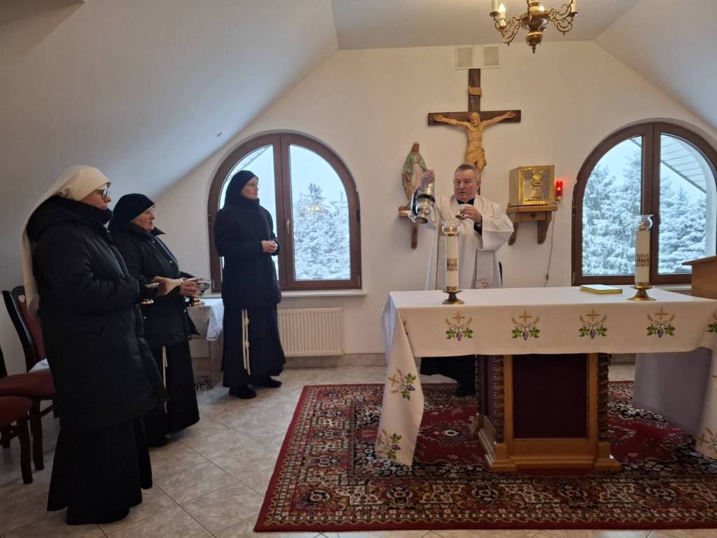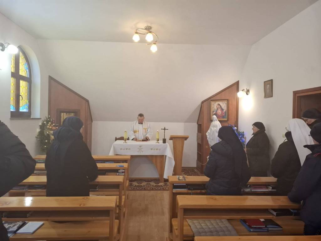 Wizyta rozpoczęła się Mszą Świętą sprawowaną w kaplicy sióstr, podczas której ksiądz Opiekun Józef Niżnik wygłosił kazanie, zachęcając do pogłębiania codziennej relacji z Bogiem, wierności powołaniu oraz nieustannej pracy nad sobą i swoim nawróceniem. Eucharystia stała się duchowym przygotowaniem do dalszej części kolędy.